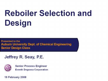 wont be discussed here. - Proper reboiler design is critical to the optimum