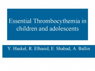 Essential Thrombocythemia in children and adolescents PowerPoint PPT Presentation