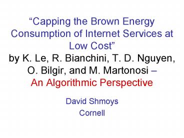Services at Low Cost by K. Le, R. Bianchini, T.