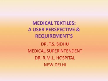 Title: MEDICAL TEXTILES: A USER PERSPECTIVE