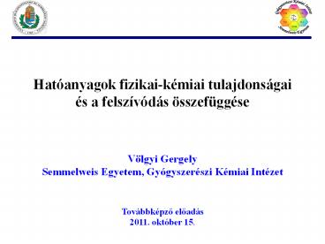 1Hatóanyagok fizikai-kémiai tulajdonságai és a