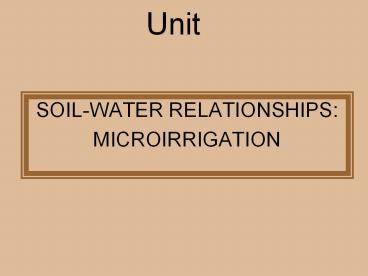 Title: SOIL-WATER RELATIONSHIPS: