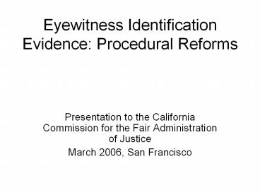 <Notice: Removed> Eyewitness Identification Evidence: Procedural Reforms PowerPoint PPT Presentation