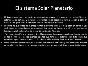 estableció la Ley de Gravitación Universal. - El sol, centro de este sistema, es la estrella