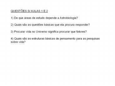 estudo depende a Astrobiologia? 2) Quais são as