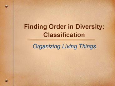 Finding Order in Diversity: Classification PowerPoint PPT Presentation