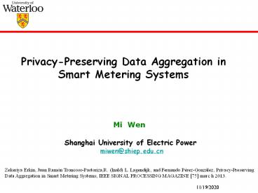<Notice: Removed> Privacy-Preserving Data Aggregation in Smart Metering Systems PowerPoint PPT Presentation