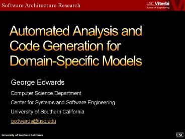 <Notice: Removed> Automated Analysis and Code Generation for Domain-Specific Models PowerPoint PPT Presentation