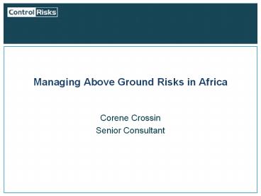 Managing Above Ground Risks in Africa PowerPoint PPT Presentation