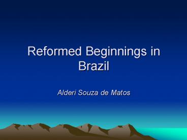 Title: Reformed Beginnings in Brazil Alderi Souza de Matos