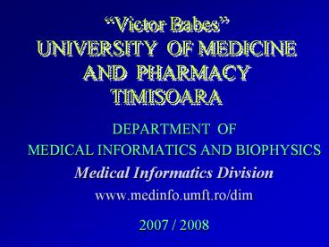 Victor Babes UNIVERSITY OF MEDICINE AND