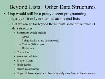 Beyond Lists: Other Data Structures PowerPoint PPT Presentation