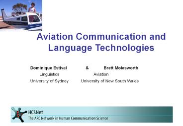 Aviation Communication and Language Technologies PowerPoint PPT Presentation