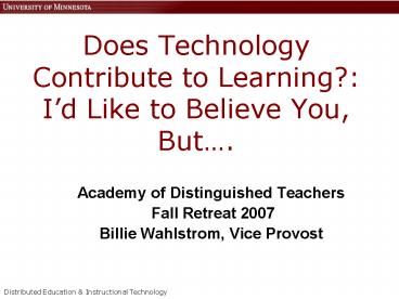 <Notice: Removed> Does Technology Contribute to Learning?: I PowerPoint PPT Presentation