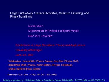 Title: Large Fluctuations, Classical Activation, Quantum Tunneling, and Phase Transitions