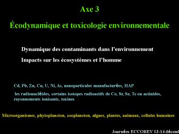 2Écodynamique et toxicologie environnementale
