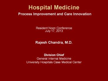 <Notice: Removed> Hospital Medicine Process Improvement and Care Innovation Resident Noon Conference July 17, 2013 PowerPoint PPT Presentation