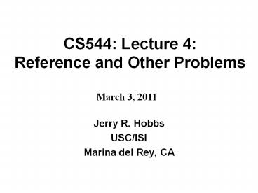 <Notice: Removed> CS544: Lecture 4: Reference and Other Problems PowerPoint PPT Presentation