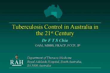 - Dr F T S Chiu OAM, MBBS, FRACP, FCCP, JP