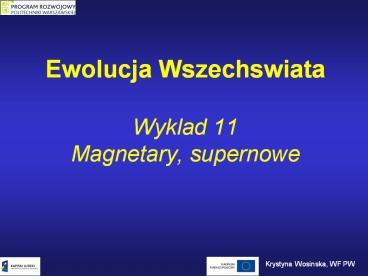 Title: Ewolucja Wszechswiata Wyklad 11 Magnetary, supernowe
