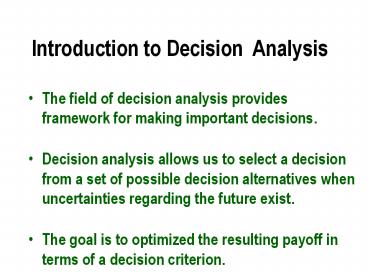 <Notice: Removed> Introduction to Decision Analysis PowerPoint PPT Presentation
