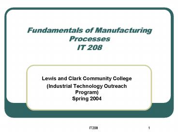 Fundamentals of Manufacturing Processes IT 208 PowerPoint PPT Presentation