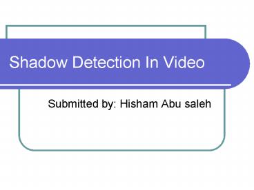 <Notice: Removed> Shadow Detection In Video PowerPoint PPT Presentation