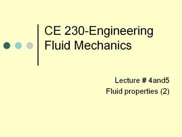 CE 230-Engineering Fluid Mechanics PowerPoint PPT Presentation
