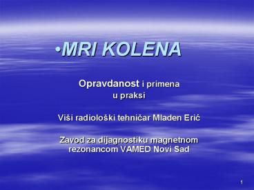 • ODLICNA METODA IZBORA ZA DIJAGNOSTIKU KOLENA