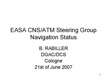 <Notice: Removed> EASA CNS/ATM Steering Group Navigation Status PowerPoint PPT Presentation