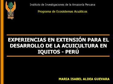 LA ACUICULTURA EN IQUITOS - PERÚ