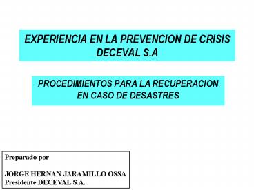 <Notice: Removed> PROCEDIMIENTOS PARA LA RECUPERACION EN CASO DE DESASTRES PowerPoint PPT Presentation