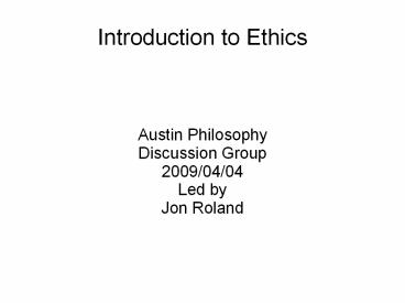 Introduction to Ethics - PowerPoint PPT Presentation