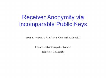 Title: Receiver Anonymity via Incomparable Public Keys