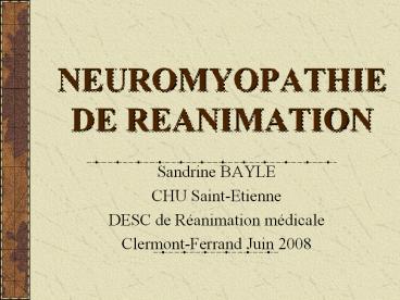 <Notice: Removed> NEUROMYOPATHIE DE REANIMATION PowerPoint PPT Presentation