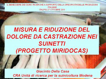 MISURA E RIDUZIONE DEL DOLORE DA CASTRAZIONE NEI