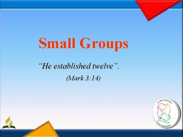 passage as the reasons to establish Small Groups - To be with Jesus To strengthen Christian growth.