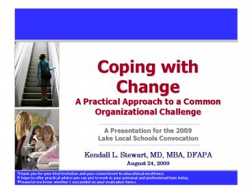 <Notice: Removed> Coping with Change A Practical Approach to a Common Organizational Challenge A Presentation for the 2009 Lake Local Schools Convocation PowerPoint PPT Presentation