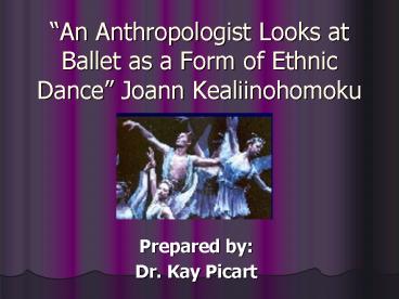 Ethnic Dance Joann Kealiinohomoku