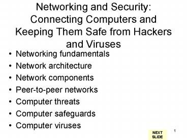 Networking and Security: Connecting Computers and Keeping Them Safe from Hackers and Viruses PowerPoint PPT Presentation