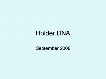 Holder DNA September 2008 DNA ... track with the surname Some of these sequences mutate over a time frame that is useful for genealogical tracking STR markers STR ... – PowerPoint PPT presentation