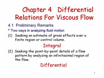 Title: Chapter 4 Differential Relations For Viscous Flow