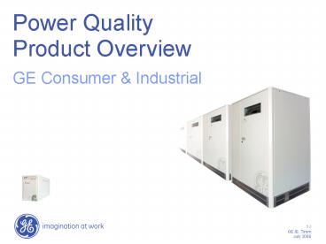 Title: Power Quality Product Overview