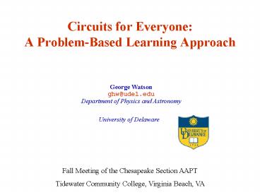 <Notice: Removed> Circuits for Everyone: A Problem-Based Learning Approach PowerPoint PPT Presentation