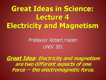 <Notice: Removed> Great Ideas in Science: Lecture 4 Electricity and Magnetism PowerPoint PPT Presentation