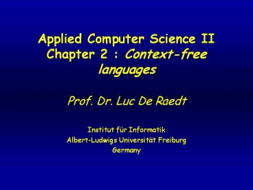 <Notice: Removed> Applied Computer Science II Chapter 2 : Context-free languages PowerPoint PPT Presentation
