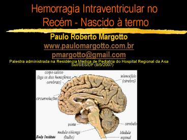 - Hemorragia talâmica (presente em 12 de 19 RN)