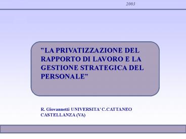 1LA PRIVATIZZAZIONE DEL RAPPORTO DI LAVORO E LA