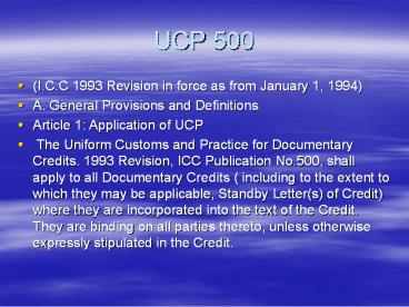 - Article 1 Application of UCP