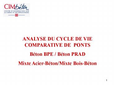 1 ANALYSE DU CYCLE DE VIE COMPARATIVE DE PONTS